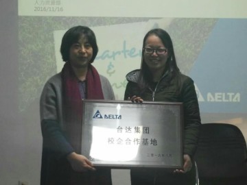 11月23日,台达集团中达电子(江苏)有限公司人力资源部经理任大萍等一行四人来我院签署校企合作协议,并向我院授牌。