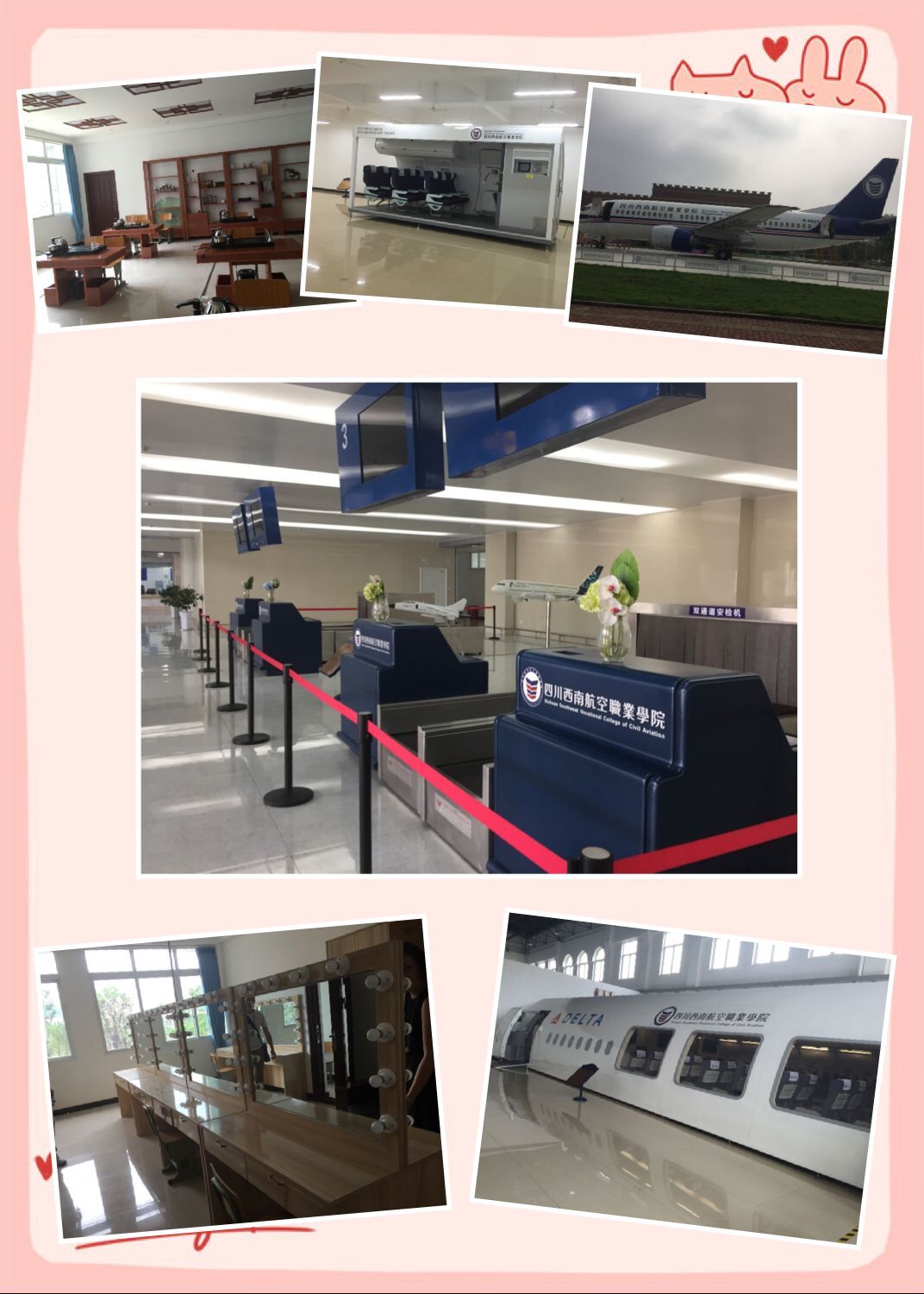 老师们先后考察了西南航空职业学院等三所高校,分别就专业建设、课程设置、教师转型培训及行业内教员聘任途径诸方面进行了交流学习,同时就三所院校的专业发展历史、专业定位和办学理念进行了座谈。重点考察对象西南航空职业学院负责人引导老师们参观了教学区,化妆室、形体训练室、茶艺室等实训区,还有安检、客舱服务及票务等模拟设备。受到震撼的同时,也启发了思路,给我们在专业实训室建设等方面提供了可行性思路。