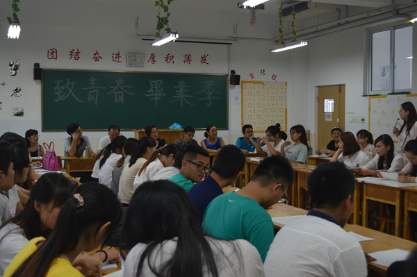 7月15日,轻化工程系2016届毕业生集体返校之际,染整技术专业、纺检贸易专业、应用化工技术专业以教研室为单位分别在J7401、J7402、J7501展开了跟学生的座谈交流。轻化工程系郭常青主任、染整技术教研室、纺检贸易教研室、应用化工教研室全体教师参加了座谈。
