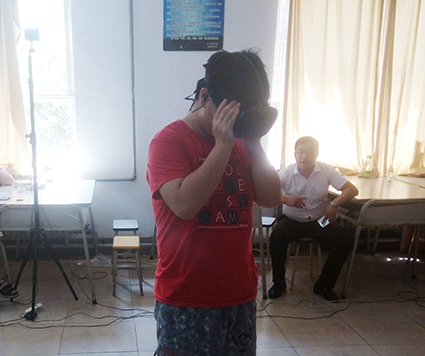 为了能让大家现场感受到VR的最新技术,讲座在现场设立了VR体验区,学生们在工作人员的指导下,佩带VR设备亲身体验了VR所带来的沉浸式体验。(艺术设计系 石向飞)