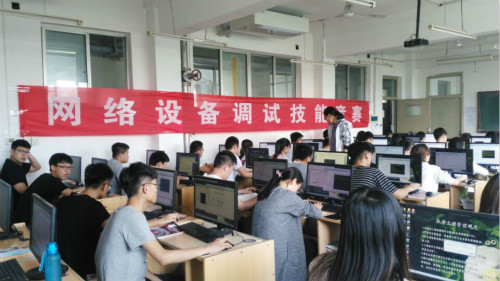 5月9日,信息工程系在第二机房举办了网络设备调试技能竞赛。通信技术专业66名15级学生参加了此次竞赛。