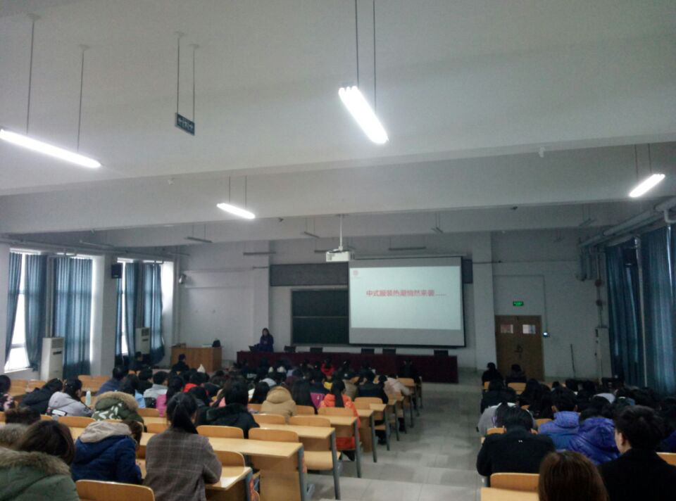 2016年12月22日16:00纺织服装工程系邀请舜唐家纺唐静总经理为大家做中式服饰文化讲座,纺织服装工程系教学副主任李超老师主持会议,服装与服饰设计、服装设计与工艺专业的教师和学生参加了本次活动,唐总从齐文化开始,为大家介绍了中式服装上的设计要点、新材料的使用等,非常地通俗易懂和实用,师生们都受益匪浅。