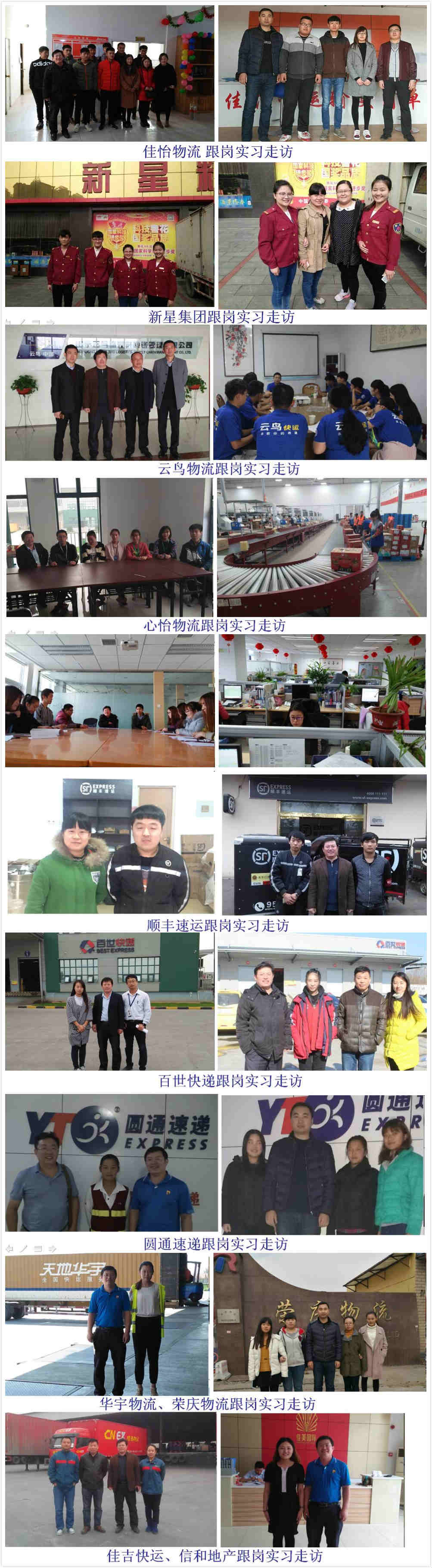 2016-2017-1学期,商务贸易系物流教研室按照跟岗实习实施方案,安排学生到合作企业进行实习,并严格按照实习走访计划,到主要实习单位进行跟岗实习走访和市场调研,看望2014级实习学生。