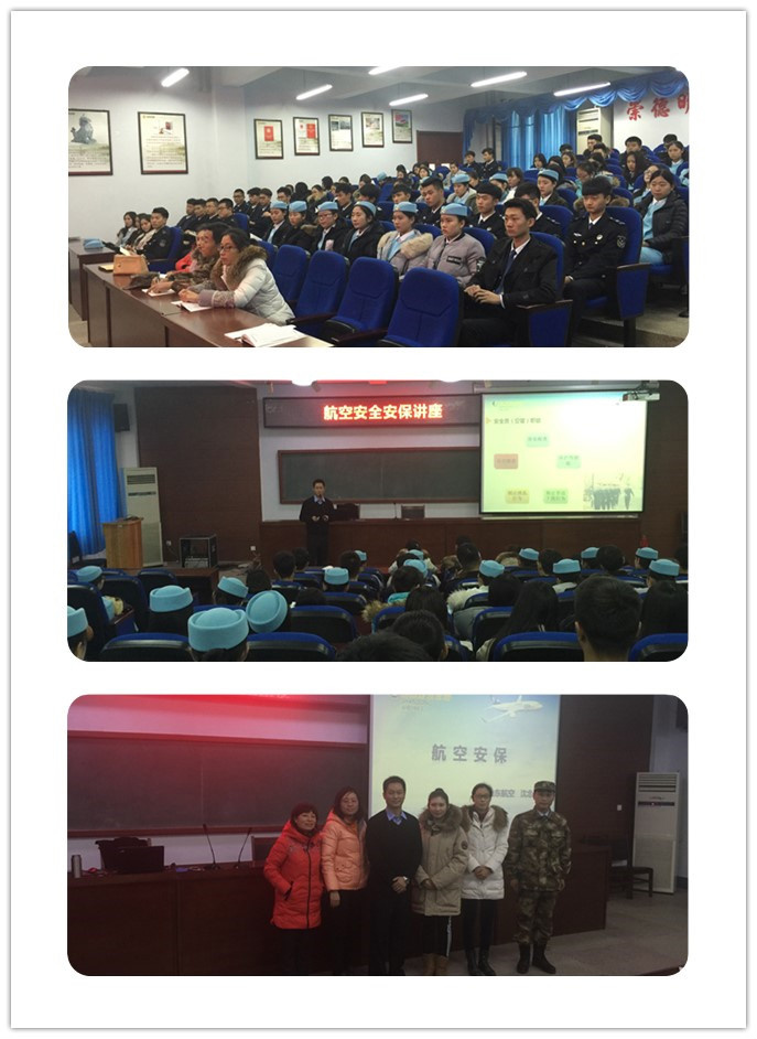 近日,工商管理系空乘专业室在图书馆法制教室举办了有关航空安全安保的主题讲座,特邀山东航空公司空警总队教员沈念老师主讲。空乘教研室的全体教室和班主任组织带领16级大专班全体同学参加了本次讲座。