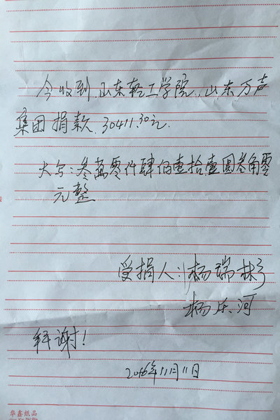 今年9月份,杨瑞彬同学在北京协和医院确诊患上了急性骨髓性白血病,已经进行了2次化疗,从7月份患病到现在,病痛折磨着这个原本阳光又幽默的男孩,高额的治疗费用给这个普通的人家带来的沉重的经济负担。班主任得知学生情况后,及时向系部反馈,受到了学院、团委和系部领导的高度重视。爱心社向全院师生发出了倡议,在学院组织了爱心募捐。系部校企合作单位山东万声通讯有限公司也向杨瑞彬捐款一万元。