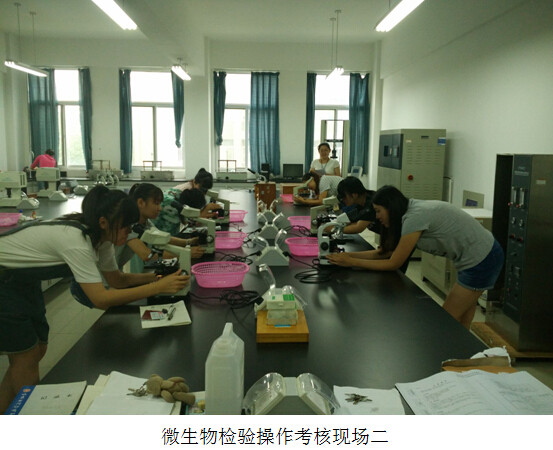 学生经过两年专业学习及前期4个周的专项实践训练,熟练掌握食品检验工的各项考核要求,考试严肃认真,秩序井然,操作规范,分析准确,圆满完成考核工作。(轻化工程系 欧阳丽)