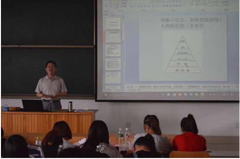 在讲座上,于总着重强调了如何摆脱困境六层次关系的重要性。从自己作为一个在职场纵横多年的企业管理者的角度跟同学们讲述人生幸福的选择之道、人生的意义。于总告诉同学们,“态度+能力+努力=人生成就”,正确的人生哲学和积极向上的性格以及感恩的心态造就成功人生。最后,于总对行业趋势进行了分析和讲解,为同学们指出了较有发展空间的研究方向。