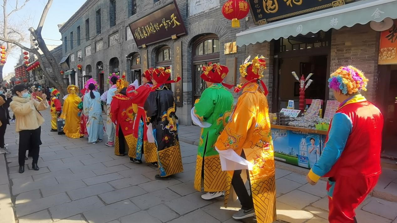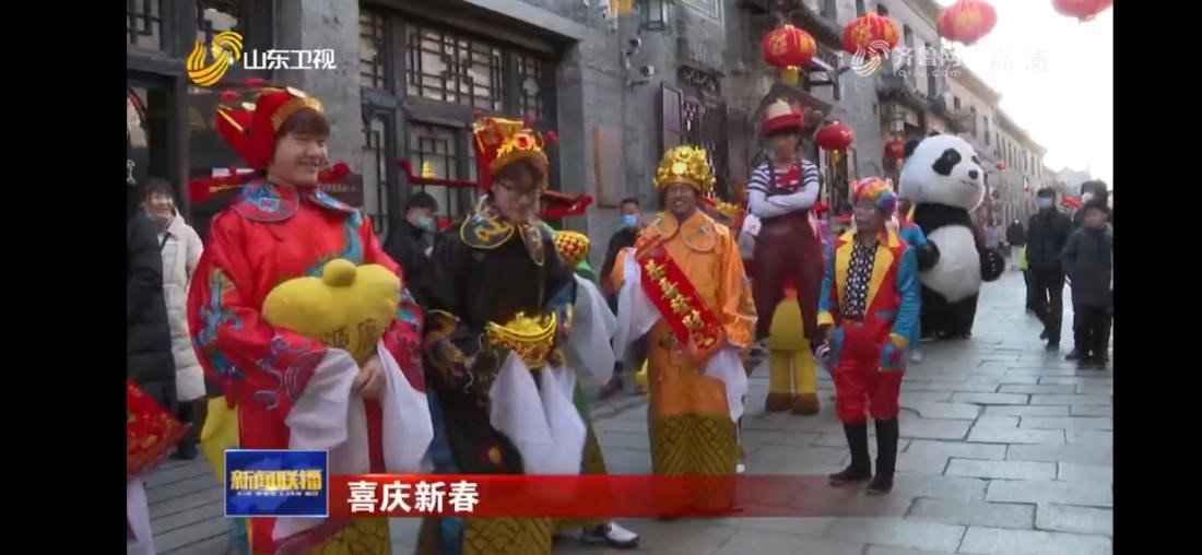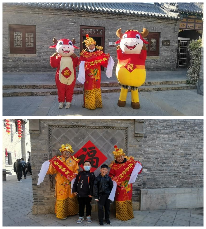 大年初五,周村古商城素有“财神到我家”传统民俗活动,团总支书记蔡嘉慧组织商务贸易系辅导员和学生团员一大早来到景区,有的装扮成五路财神,有的装扮成萌萌的“吉祥小牛”,在牛年“破五”这一天,在周村古商城与游客互动,给游客和商户带来欢乐与祝福。