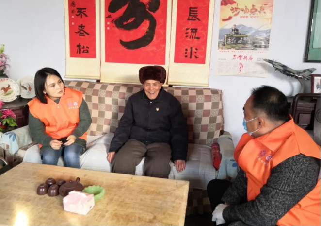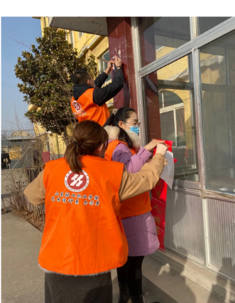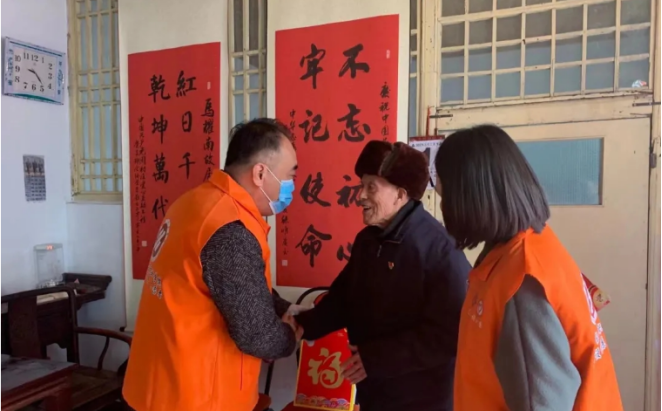 当天下午,志愿者们又来到百旺村康复疗养院,为老人们送上了春节问候和福袋。为了让疗养院增添节日气氛,志愿者们主动为老人贴春联。一幅幅寓意吉祥的对联被细心地贴在门边,喜庆的大红“福”字为疗养院增添了不少喜庆的氛围。随后,志愿者们为疗养院打扫了院落,疗养院在志愿者的清理和布置下洋溢着浓浓的年味。