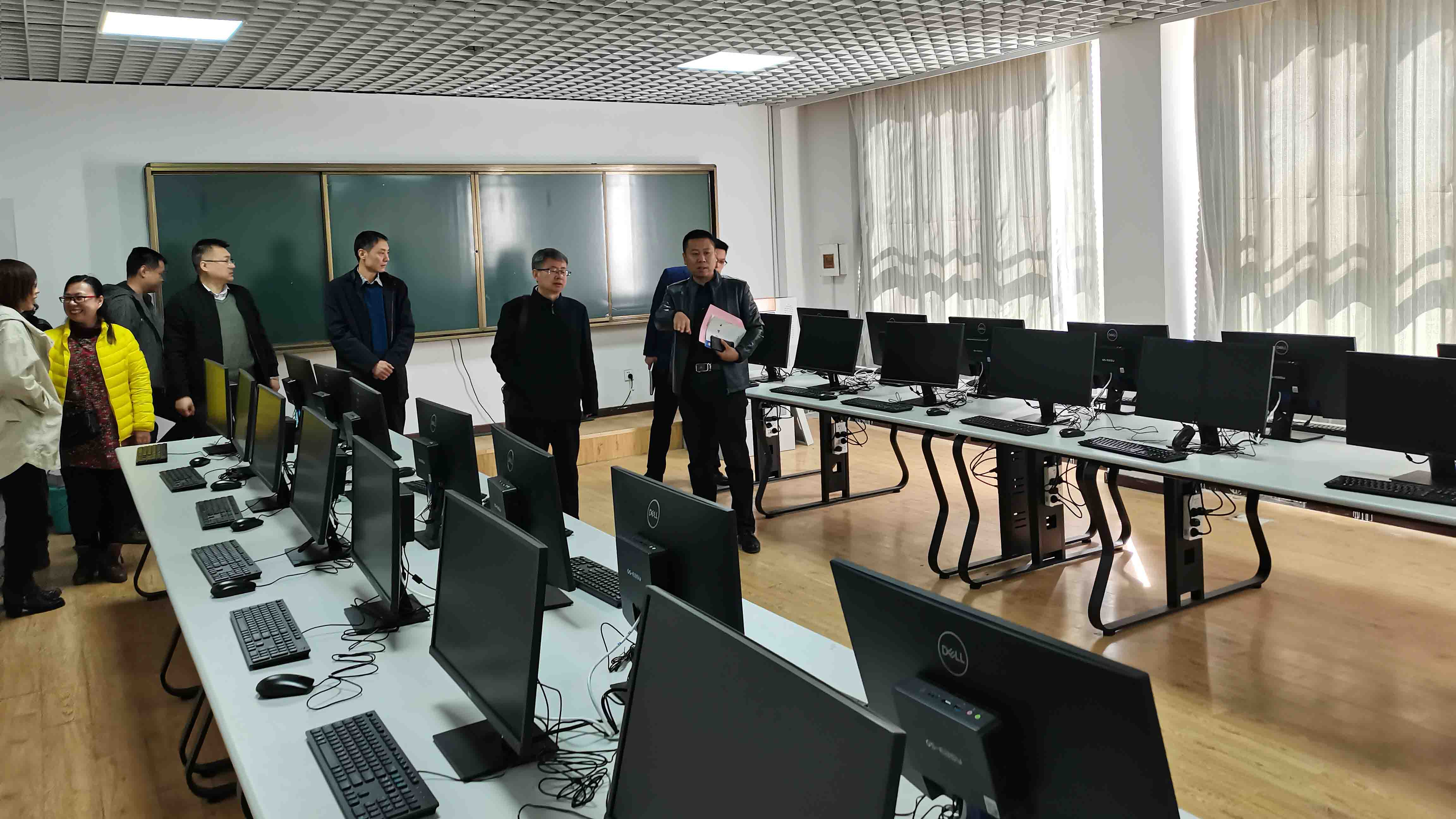 座谈会后,赵一兵主任一行在系部领导陪同下对系内教学实训场所进行了参观考察。