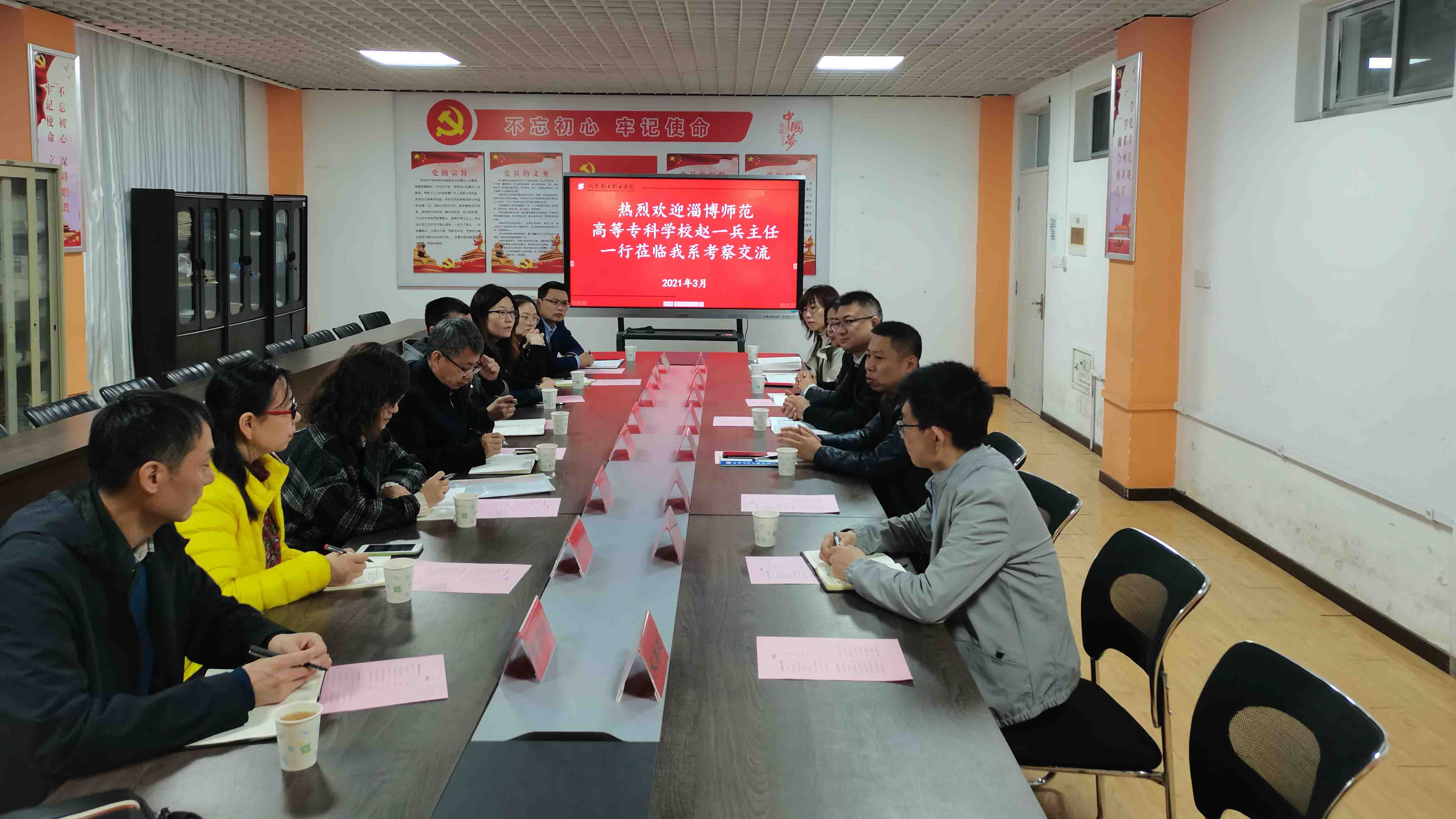 2021年3月23日,淄博师范高等专科学校信息系主任赵一兵、副主任邹春杰、系党总支副书记周政等一行8人到我校信息工程系考察交流,系主任孟英杰、系党总支书记房屹及教学、学生相关负责人参加了座谈。