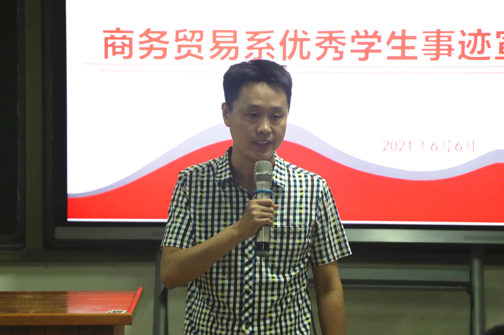 最后,商务贸易系副主任王涛对本次活动做了总结,希望所有同学向榜样学习,从优秀学生身上汲取前行的力量,树立明确的学习目标,在接下来的大学生活中以更加积极的态度、明确的目标投入到学习和生活中,努力拼搏进取,创造属于自己的辉煌。