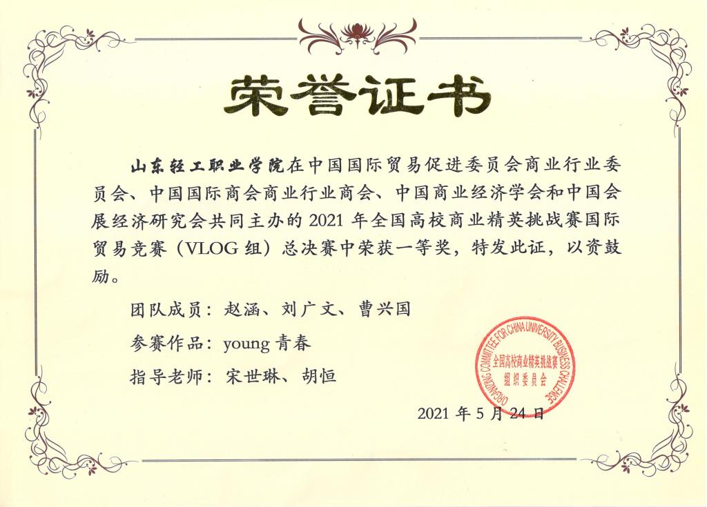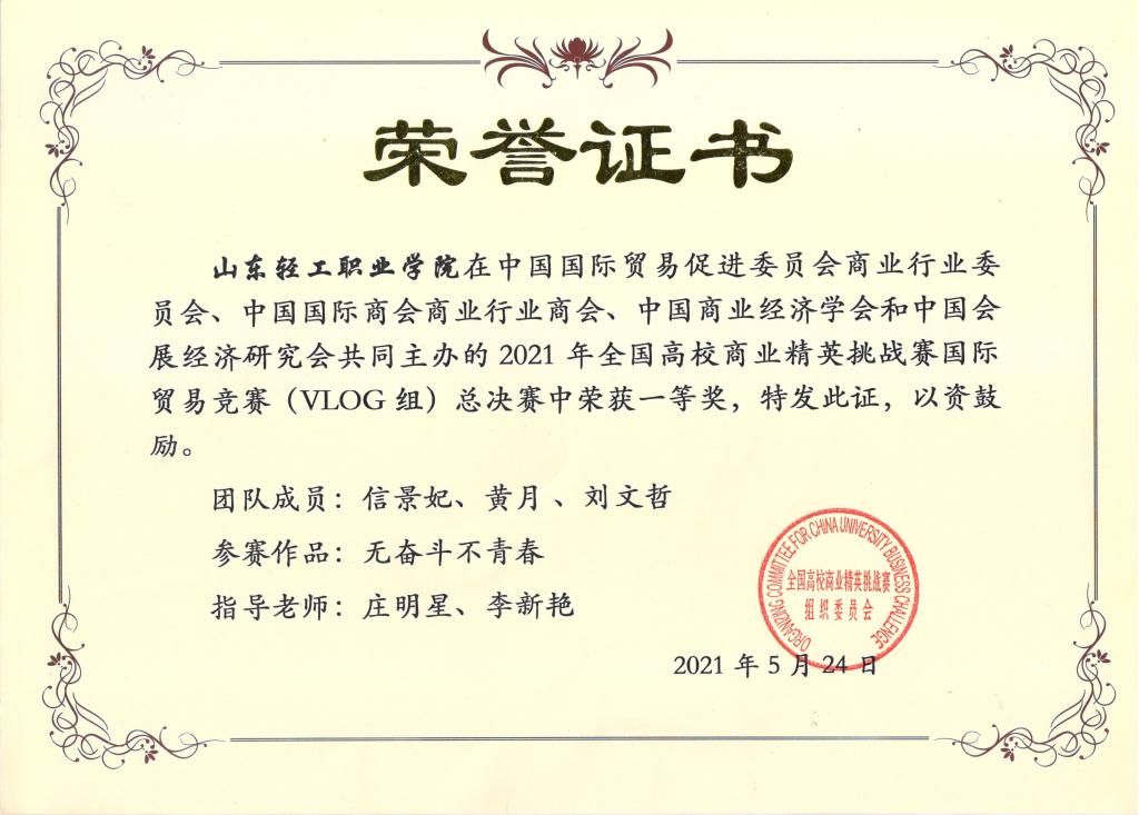 2021年5月,由中国国际贸易促进委员会商业行业委员会等4部门主办的2021年全国高校商业精英挑战赛国际贸易竞赛(VLOG组)总决赛通过网络竞赛完成,来自全国各省市、自治区和直辖市的116所高等院校210支参赛队参加本次大赛。