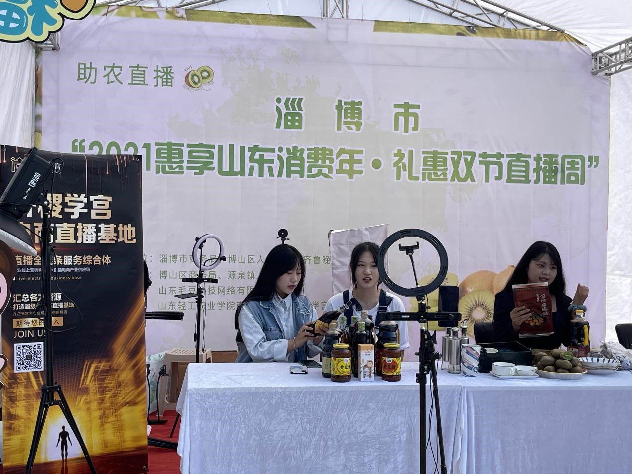 为进一步贯彻习近平总书记七一讲话重要精神,落实落地我为群众办实事活动,商务贸易系20电商毛豆班优秀学生代表通过京东网络电商平台进行扶贫助农直播,为博山区源泉镇猕猴桃“直播带货”,助力“猕猴桃事业”打通新销路。通过直播推广不仅提升了农产品附加值,助力脱贫攻坚,同时也吸引学生学习和掌握数字经济时代的新技能,实现创业带动就业。