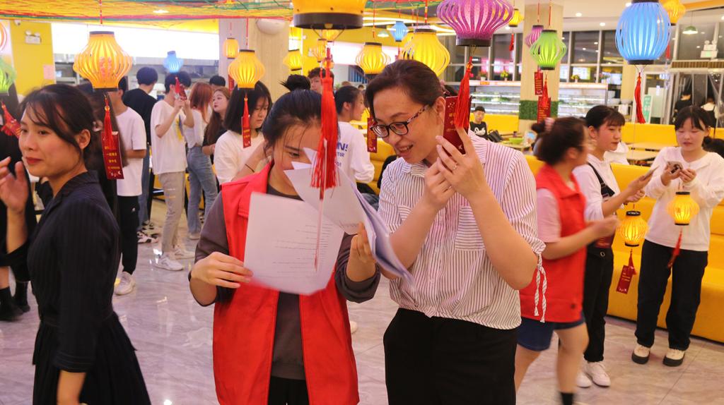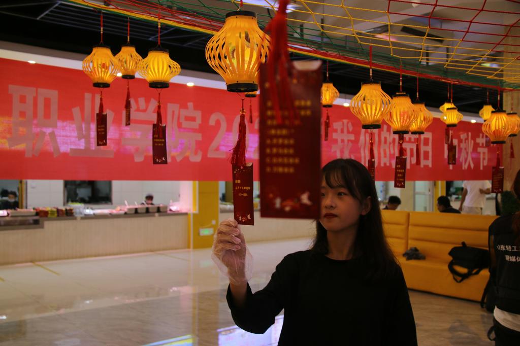 活动项目主要包括包月饼和猜灯谜。工商管理系党总支书记王茜同志先和同学们讲述了传统节日的由来和意义,并详细为同学们讲授了月饼的制作方法,同时老师也为大家准备了好多条灯谜,王茜书记首当其冲,赢得了第一个彩头—七彩灯笼。