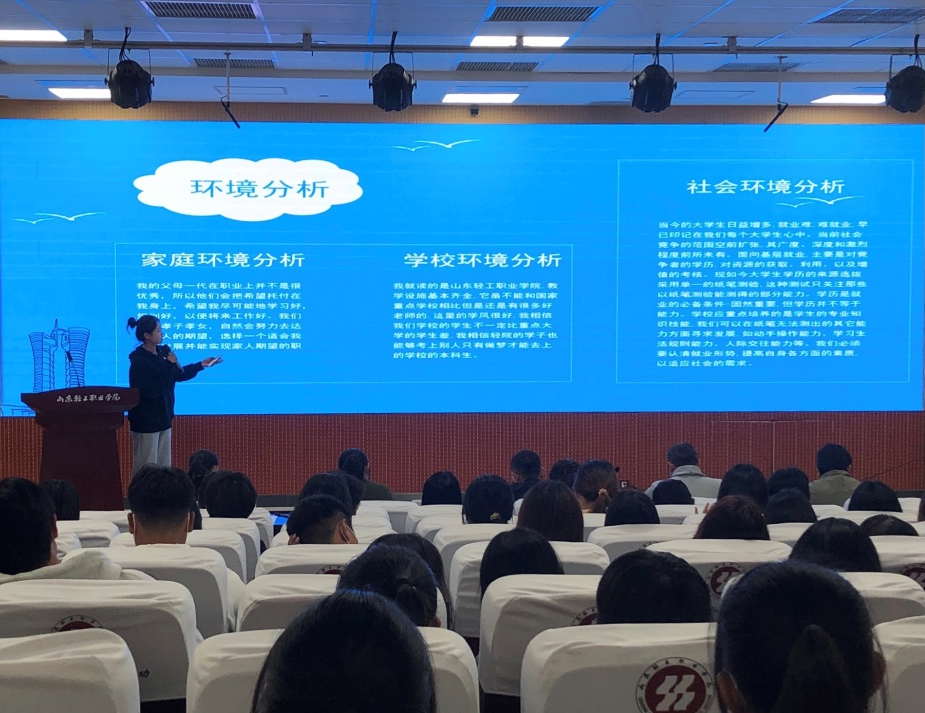 参赛选手通过展示精心制作的PPT,讲述了自己的职业兴趣和自己的未来职业规划。选手们还在演讲中运用了SWOT(Strengths、Weaknesses、Opportunities、Threats)分析方法,即基于内外部竞争环境和竞争条件下的态势分析的方法,找出自身优势与劣势,从而详细制定个人短期和长期目标。
