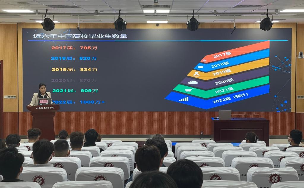 为进一步帮助学生认识职业发展全貌,做好生涯规划与职业发展,11月3日下午,招生就业办公室在图文信息楼第一多功能厅举办大学生职业规划辅导讲座,本次讲座主题是“树立职业意识,规划精彩人生”,由齐鲁人才研究院副院长李召华主讲。各系(院)入围大学生职业生涯规划比赛复赛的89名学生参加了本次讲座,讲座由招生就业办公室就业科王沁琳主持。