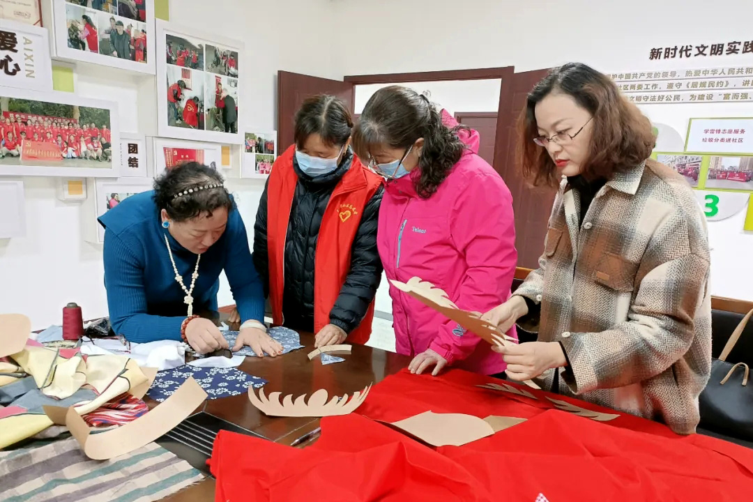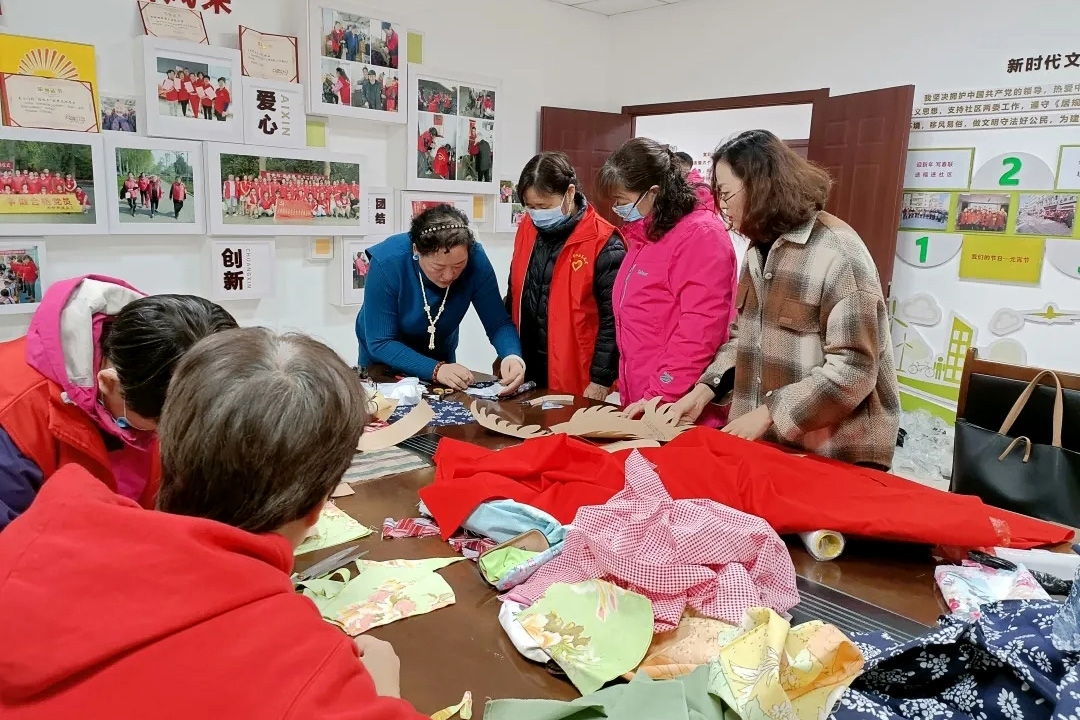 通过王教授的讲解,社区居民们对鲁绣技艺有了一定的了解,纷纷表达出对鲁绣的热爱。为了让社区居民们真正体会鲁绣技艺,活动后期,王教授带领社区居民们开始亲手制作,从剪布到缝制,再到塞棉,我系师生全程耐心地为每一位社区居民提供帮助,大家都乐在其中。