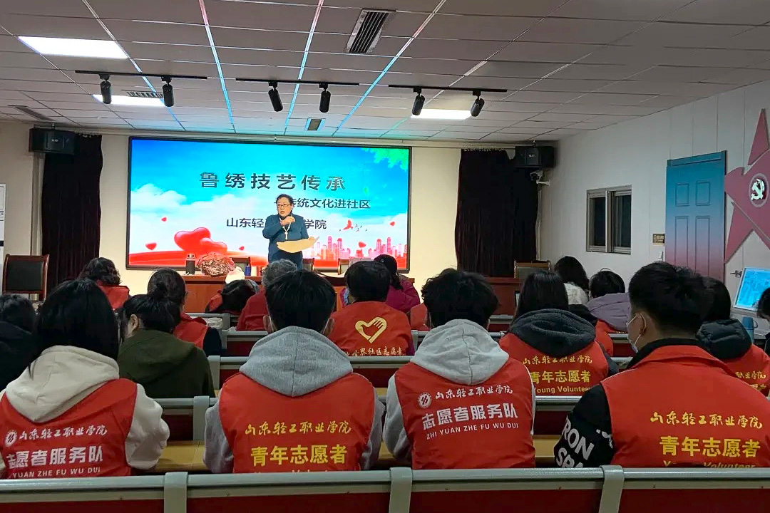 指尖鲁韵,绣丽山东。为传承鲁绣技艺,宣传鲁绣文化,同时深入贯彻职业教育观念,8040威尼斯纺织工程系于2021年11月19日在大世界社区开展了“鲁绣技艺传承——传统文化进社区”志愿服务活动。