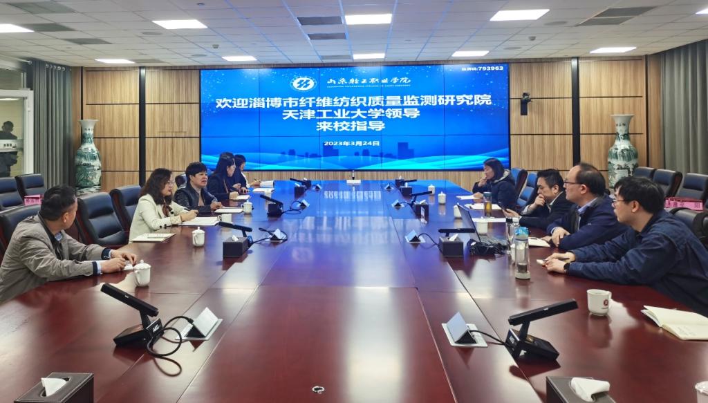 本站讯(通讯员 李群英)3月24日上午,淄博市纤维纺织质量检测研究院院长邵磊、天津工业大学纺织科学与工程学院纺织商检系主任夏兆鹏一行8人来校交流,学校党委委员、副院长李玉红及相关单位负责人参加座谈。