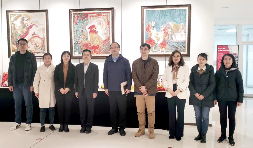 座谈结束后,夏兆鹏、邵磊一行参观了“奋力新时代·筑梦新征程”师生作品汇报展、纺织品质量检测中心、艺术印染中心等实训室。